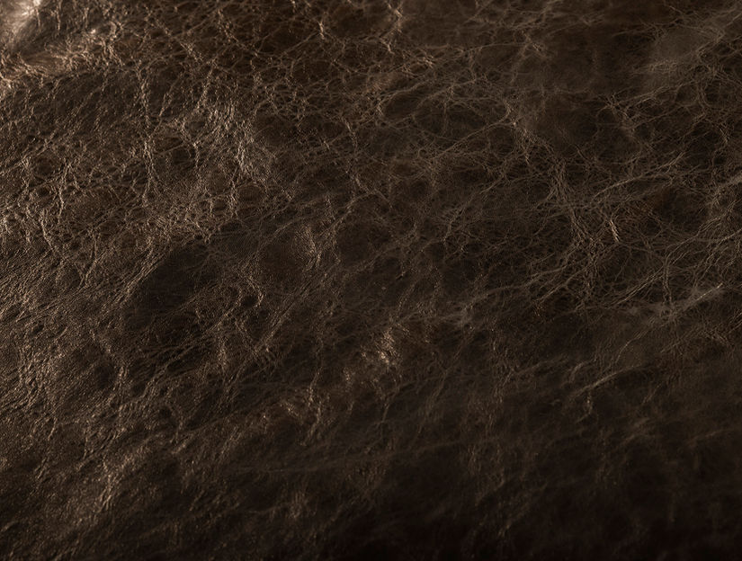 Type of leather: full grain, aniline, with pull-up. Standing leather (not fully flat) with strong structural effects